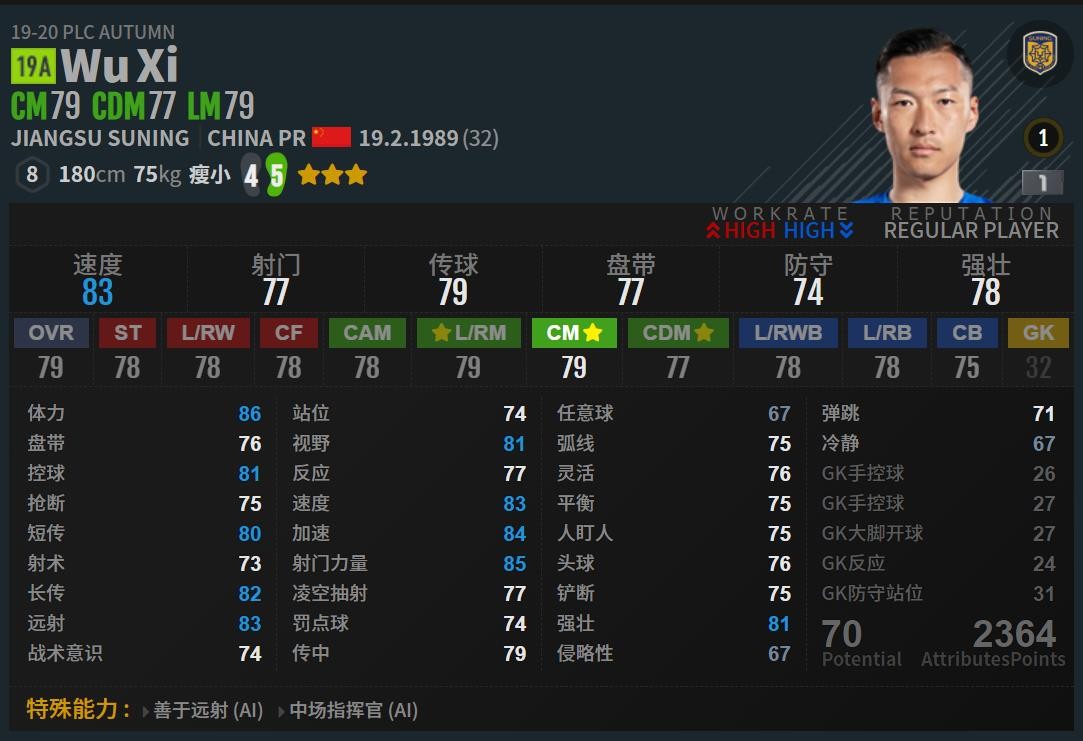 吴曦 FIFA 4 数据
