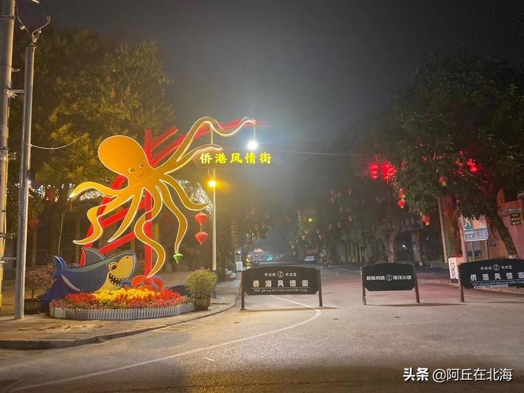 侨港风情街位于北海市区南部的侨港镇,是北海最有名的美食街。1978年,为了帮助从越南归国回到北海的一万多名旅越难侨发展生产建设家园,我国政府拨款2908万元人民币,联合国难民署资助785万美元,建起52幢1000多套居民楼,总建筑面积93739平方米。1979年,广西壮族自治区人民政府批准成立唯一一个安置归侨的镇级行政区域,也就是当年的北海市侨港人民公社,后来更名为侨港镇。
