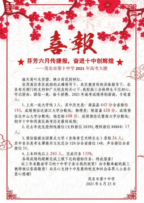 芬芳六月传捷报,奋进茂名十中创辉煌