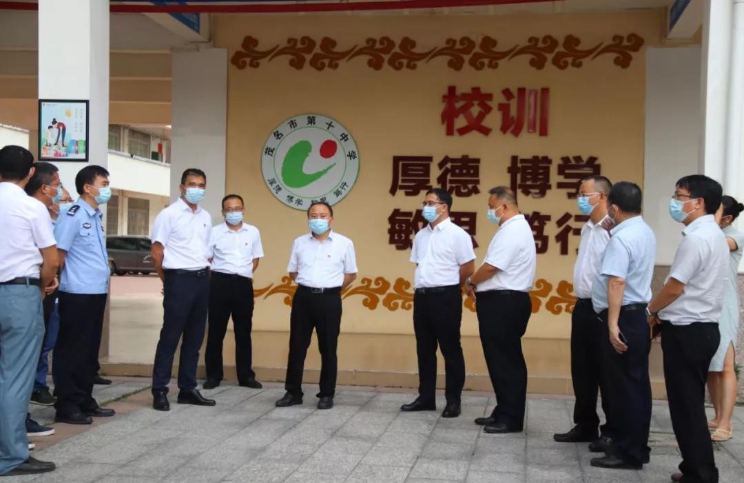 今年高考备考期间,茂名市委、茂南区委领导深入茂名市第十中学视察,把脉基层,对学校高考备考工作给予加温鼓励,为学校创下佳绩带来强大的动力。
