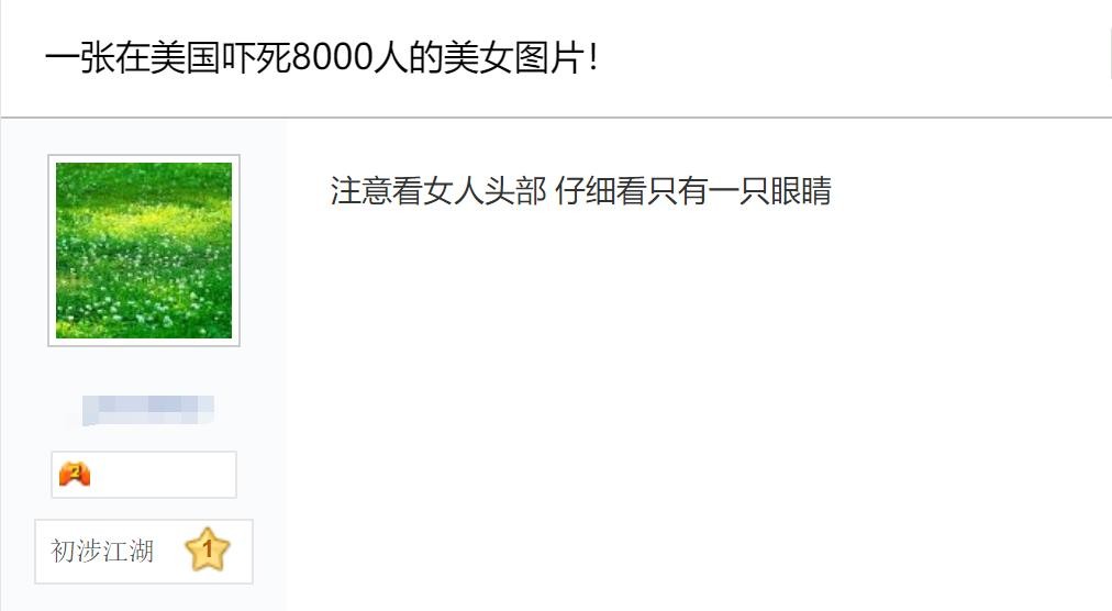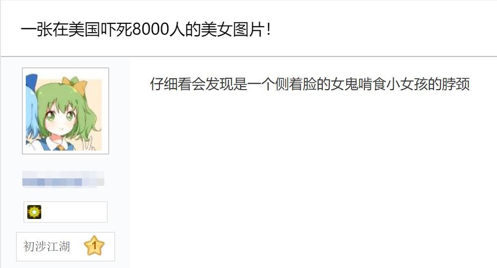 标题还是一如既往地夸张,吓死8000人的美女,但这次楼主却坦言,真的没看懂为什么这么恐怖。