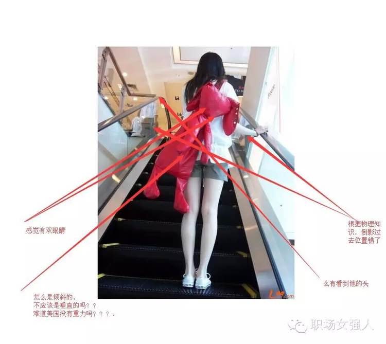 甚至还有网友根据万有引力定理称,女孩的背包受到重力的作用应该垂直于地面,但图片中的背包却是倾斜的,这违反了物理常识