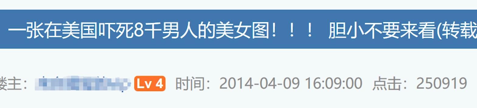 比如说2014年天涯论坛上的一篇帖子,首先靠标题吸引路人注意
