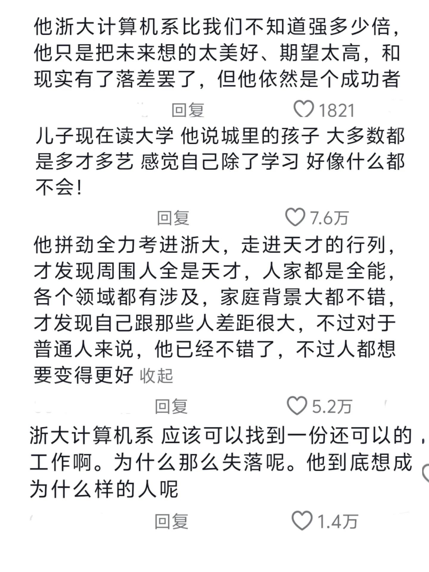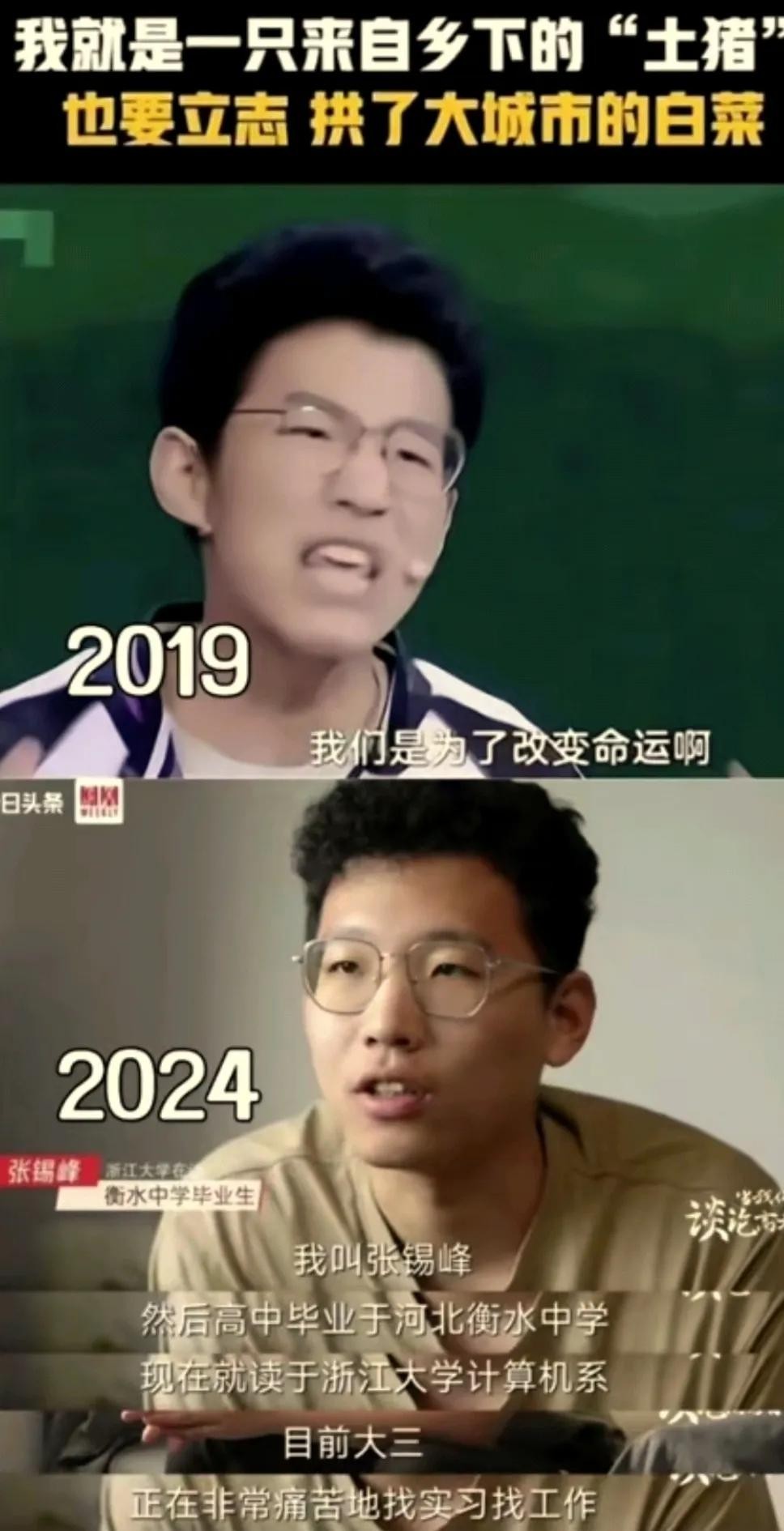 这让大众很是错愕,这么优秀的少年也被现实磨平了棱角,他在我们眼里已足够成功,但仍不能摆脱小镇做题家的身份。他是金子,可这里是浙大,金碧辉煌。张锡峰在大学用三年从理想走向现实,不知道他经历了什么。
