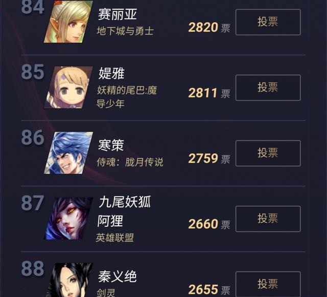 像传统的人气角色,诸如小橘子,也是仅仅排在了第七的位置。而前十除了上榜的这些外,有一些我们比较熟悉的游戏角色但是排名都不是很乐观,诸如我们熟悉的赛丽亚。