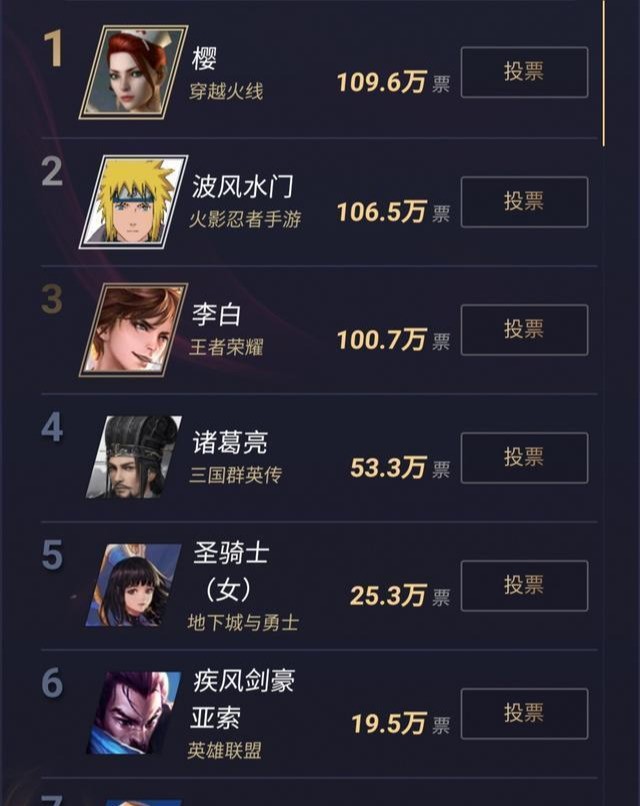 这个排行出乎意料的地方其实是《王者荣耀》和《英雄联盟》纷纷折戟,《王者荣耀》中的李白好歹稍微有点牌面,挤进了前三的位置,这《英雄联盟》的亚索竟然排到了第六,甚至还没比过《三国群英传》中的诸葛亮。