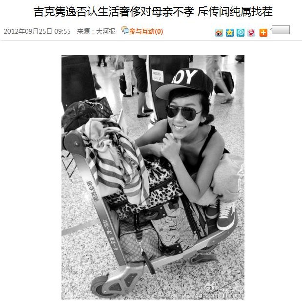 在一次机场照中,吉克隽逸的行李,由内而外散发着“钱多”的味道。