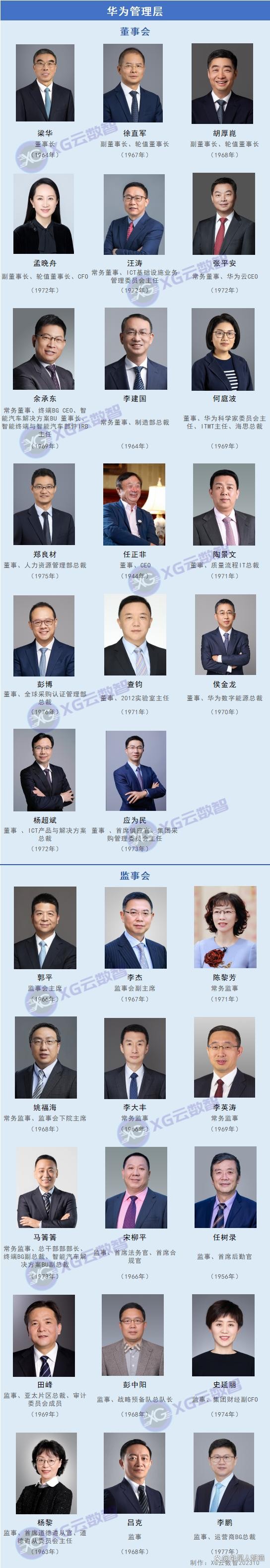 郭平先生出生于1966年,毕业于华中理工大学(现华中科技大学),硕士。1988年加入华为,历任产品开发部项目经理、供应链总经理、总裁办主任、首席法务官、流程与IT管理部总裁、企业发展部总裁、华为终端公司董事长兼总裁、公司轮值CEO、财经委员会主任、公司副董事长、轮值董事长等职务,现任公司监事会主席。