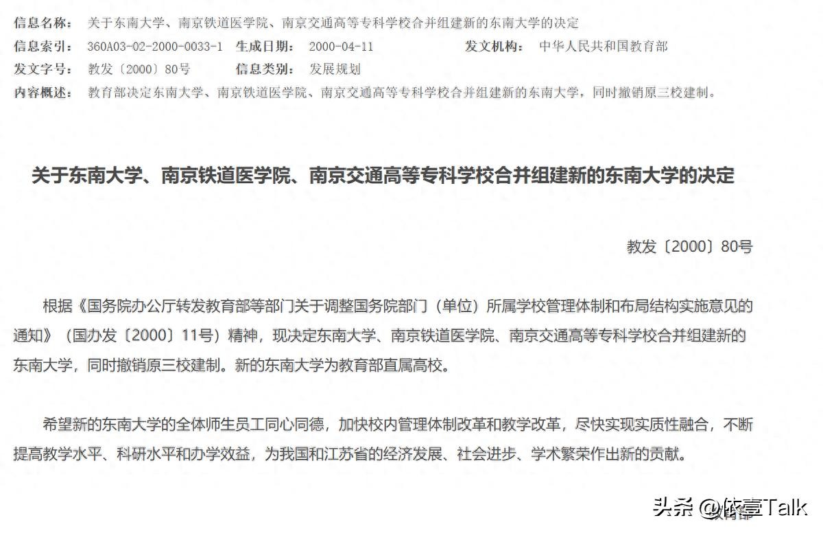 她所读的学校合并加入了东南大学。