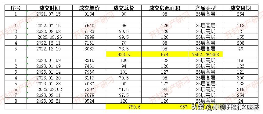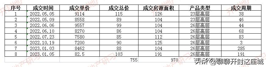 23-26层高层:成交151套,成交均价8928.05元/㎡。
