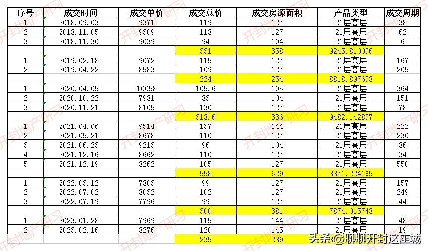 附:郑开橄榄城二手房成交数据表(359套)