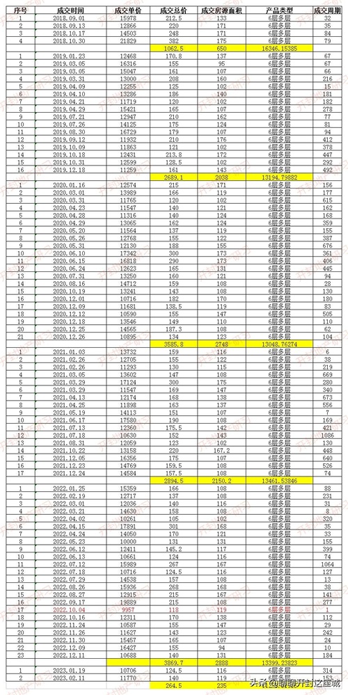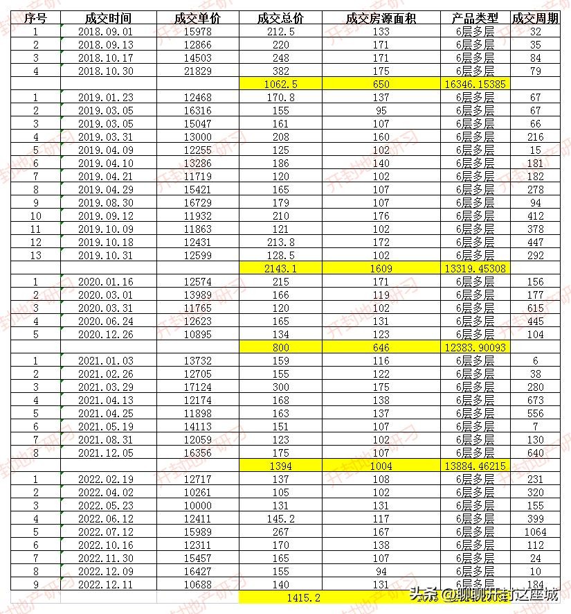 6层多层产品成交均价:11401.06元/㎡。