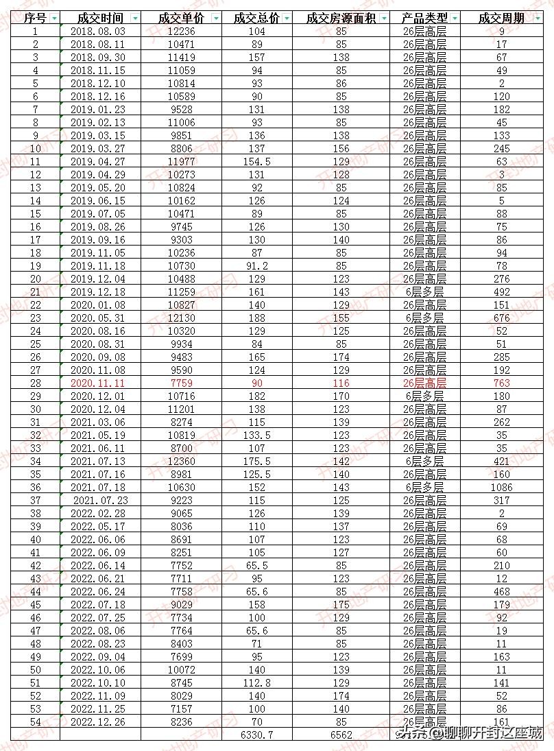 26层高层产品成交均价:9420.21元/㎡。