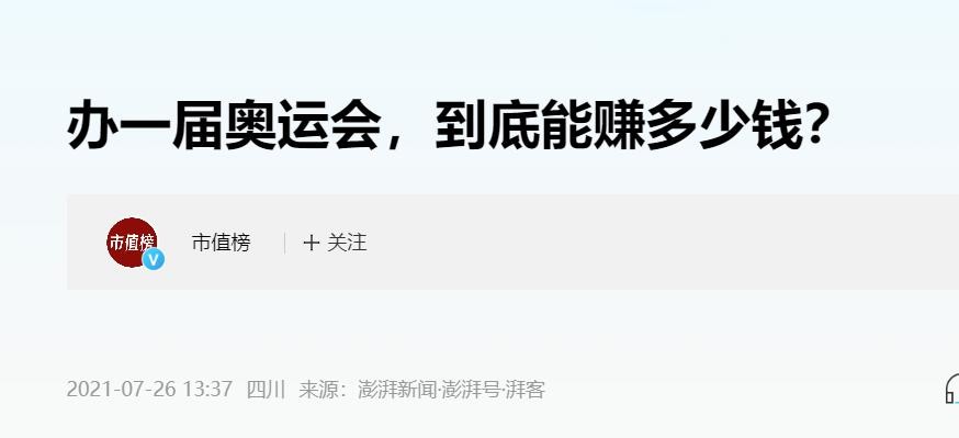 澎湃新闻在 2021-07-26关于《办一届奥运会,到底能赚多少钱?》的报道