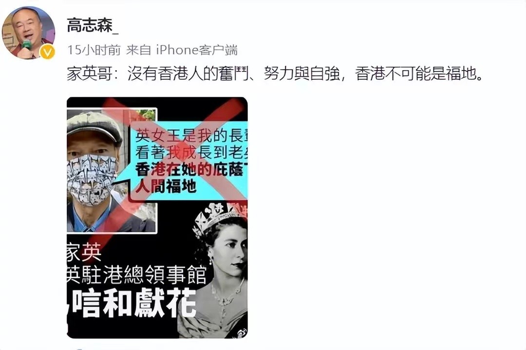 导演高志森也隔空喊话罗家英“没有香港人的奋斗、努力与自强,香港不可能成为福地。”
