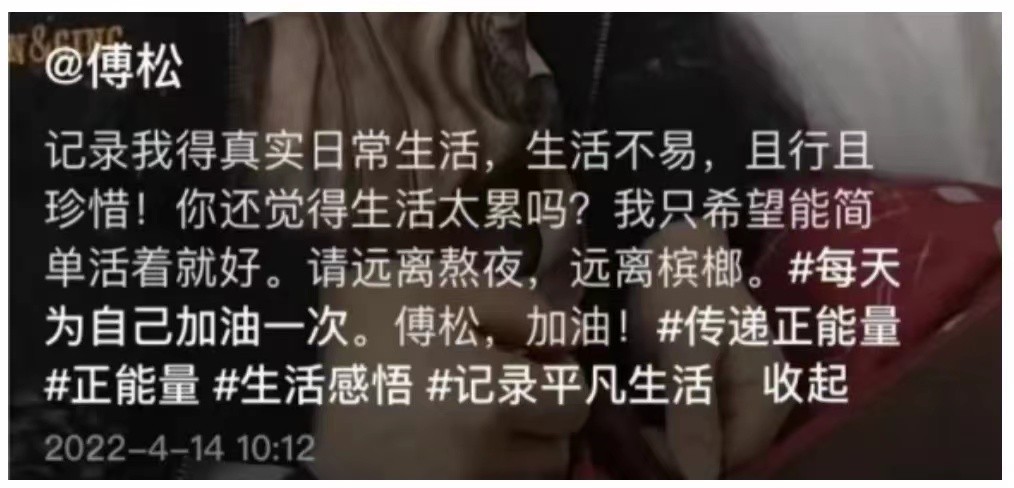 2021年,傅松开始接受相关治疗,之后,他也时常在个人社交账号上公布自己的抗癌情况。