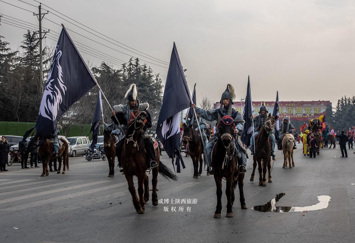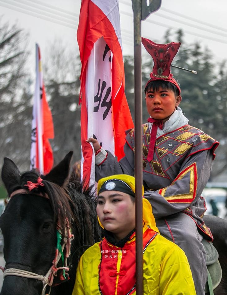 关山的马队。要说马社火,全国最有优势的恐怕就是陇县了。毕竟关山草原是当年秦始皇祖先替周王室养马的地方。