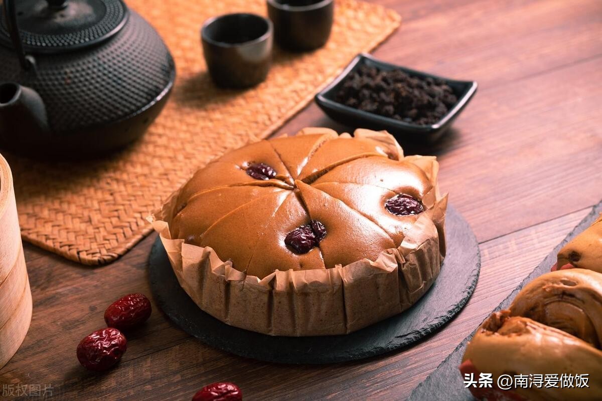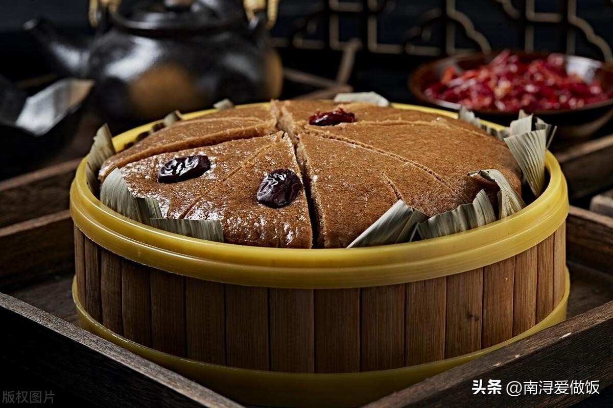 7. 蒸制发糕:大火将蒸锅加热至水开,放入发酵好的发糕,蒸30-40分钟。蒸好后关火,静置几分钟再取出。