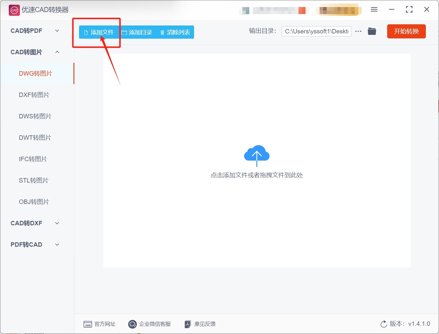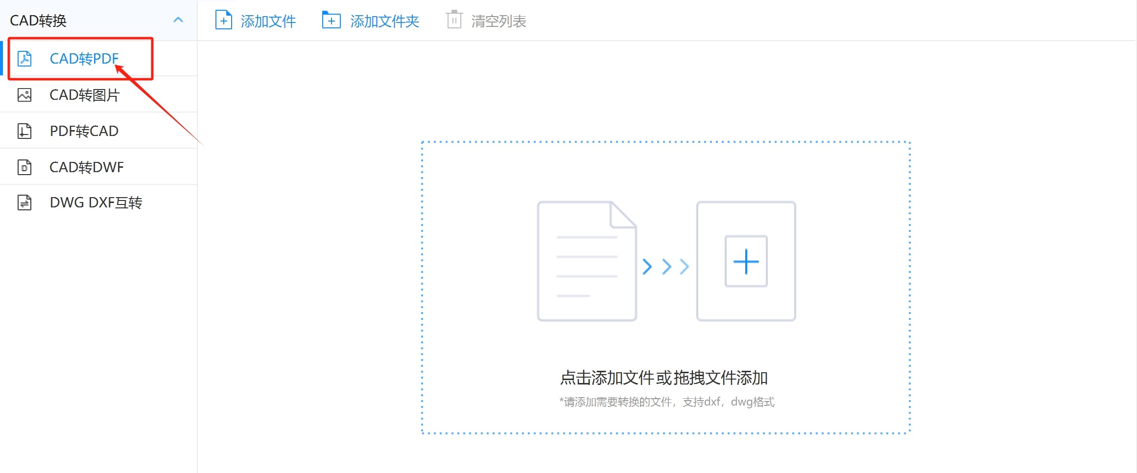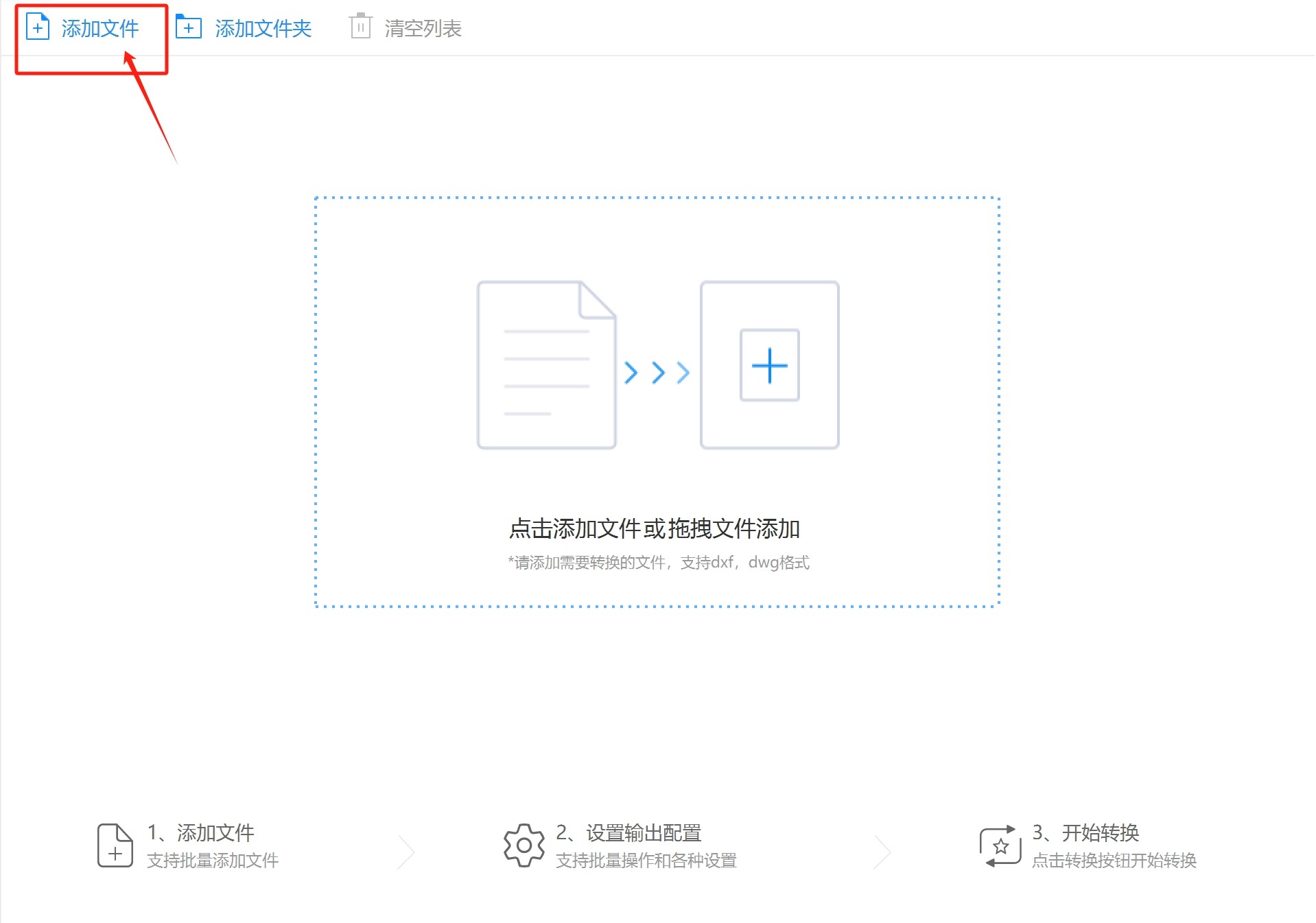 步骤3:在新页面的左上角,你会看到一个“添加文件”按钮,点击后,选择你需要转换的CAD文件并上传。