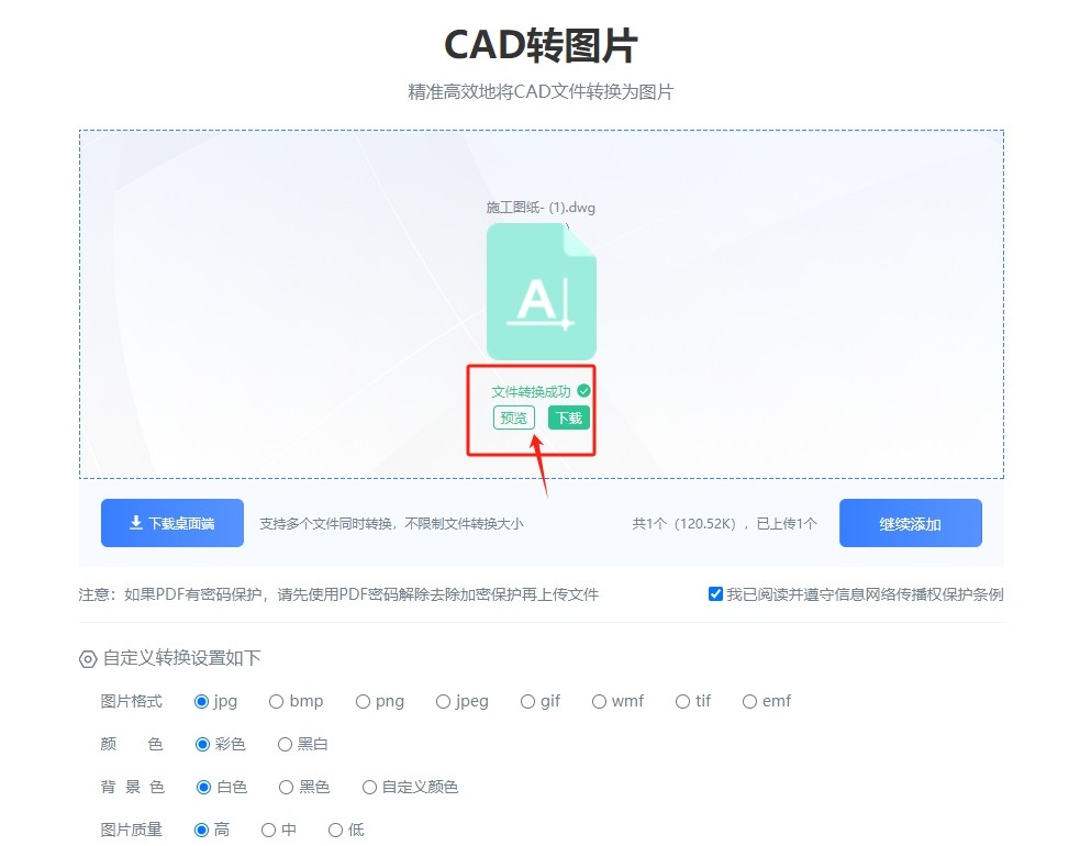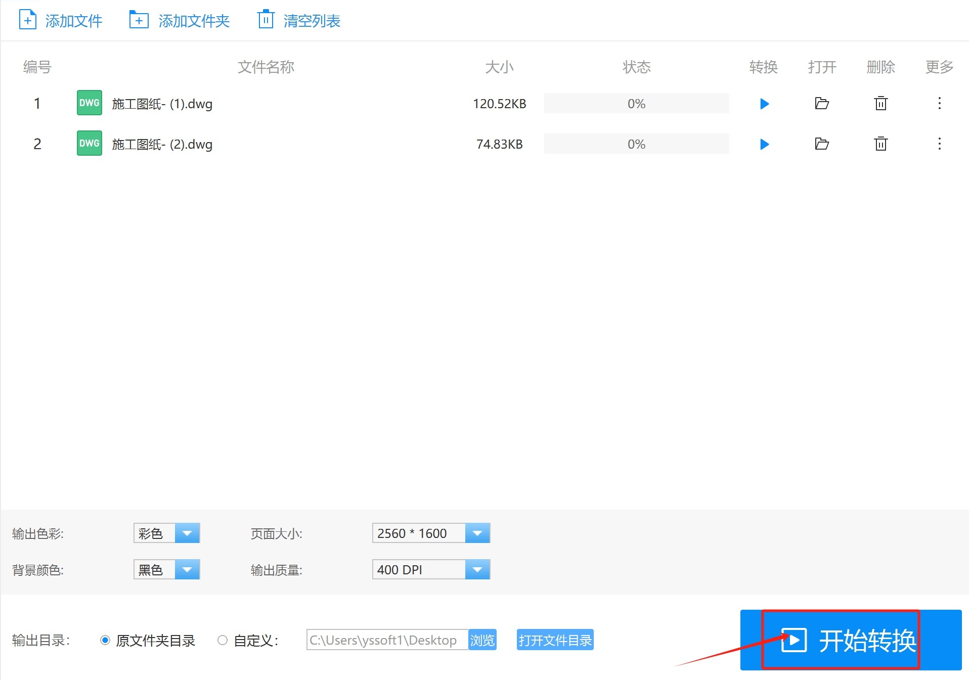 步骤5:所有设置完成后,点击页面下方的“开始转换”按钮。在线工具会自动开始转换过程。此时,你只需耐心等待工具将CAD文件转换为图片。