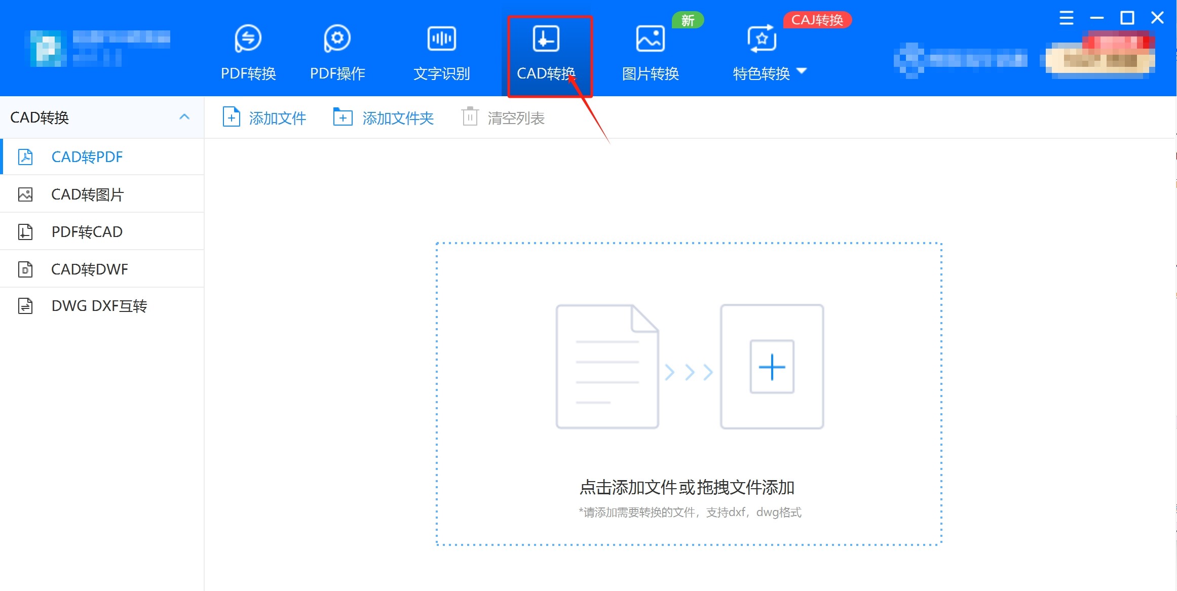 步骤1:首先,确保你已经在个人电脑上成功下载并安装了“新进PDF转换器”。你可以从官网获取安装包,按照提示完成安装。打开软件后,你将看到一个清晰简洁的主界面。在页面上方,你需要选择“CAD转换”选项,进入相关功能模块。