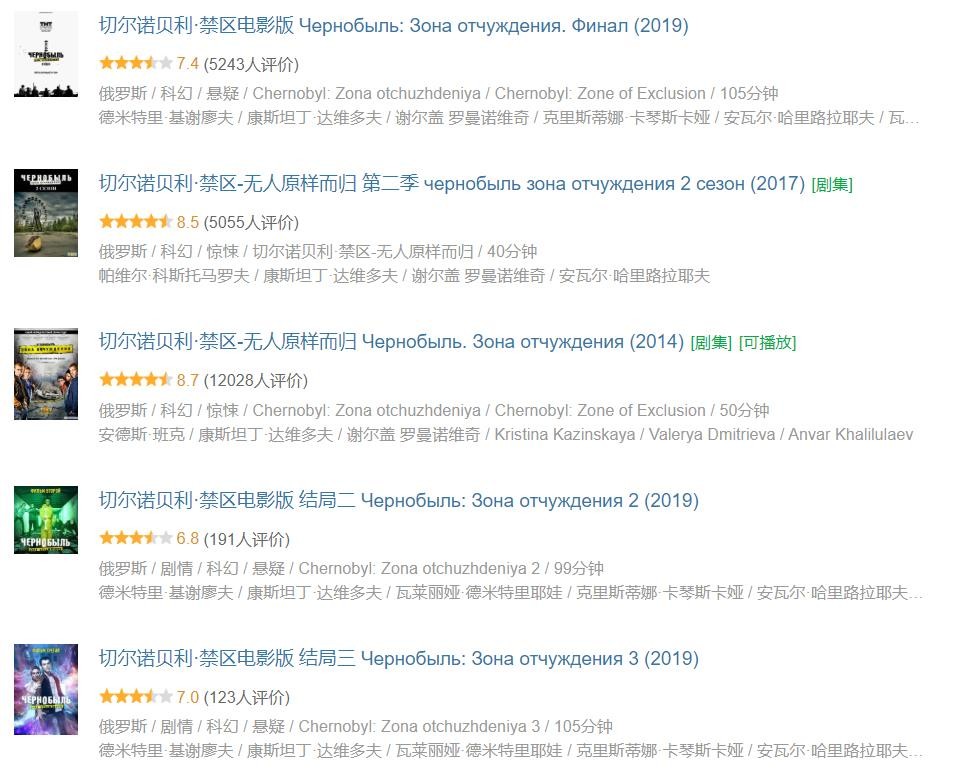 《切尔诺贝利:禁区》早在2014年推出剧集版第一季,上线后,瞬间成为爆款,打破了当年的收视记录。而第二季则硬生生憋了三年才重新归来,被拍成电影的三个结局在去年才姗姗来迟。在豆瓣上,这部俄剧的评价也颇高。