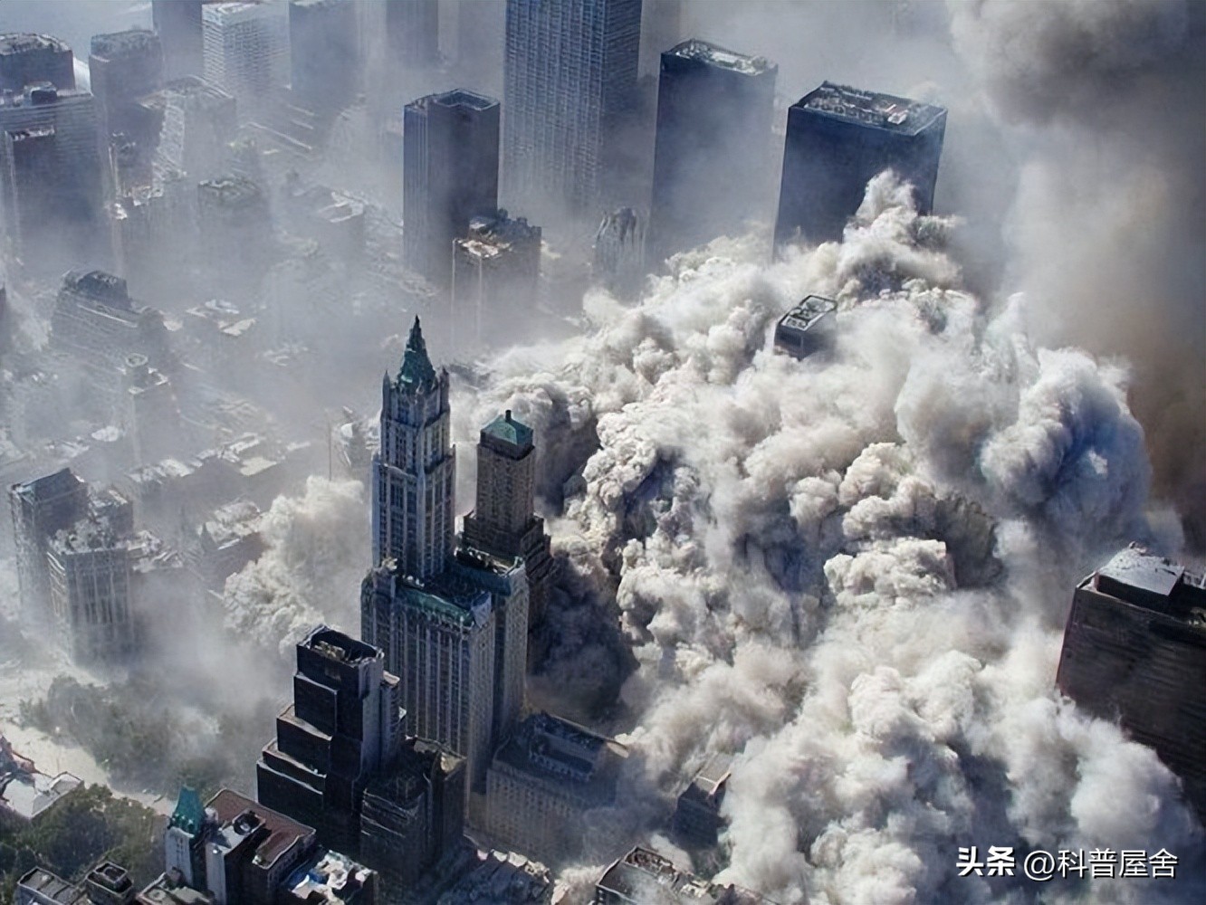 事情发展到这还没有结束,2001年9月11日,世贸中心大楼被两架飞机穿过,一前一后地就地倒塌。