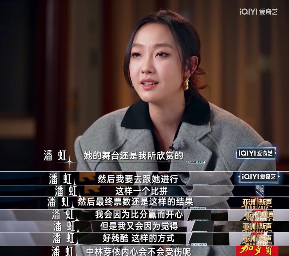 听到中林芽依的话,潘虹也没有乘胜追击,而是默默放弃抢麦。早在揭幕战时,她与中林芽依对战时就感慨,面对这么棒的歌手,心底里不缺欣赏,她也担心比赛的结果影响对方的心情。