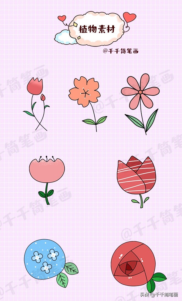 少女心爆棚的手账素材,线条简单一学就会,还不快收藏起来自制手账用起来。