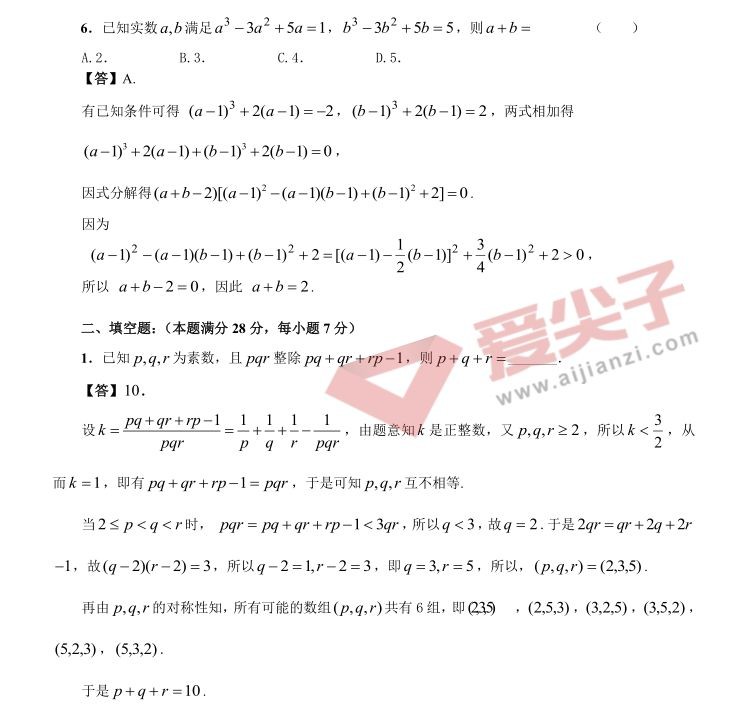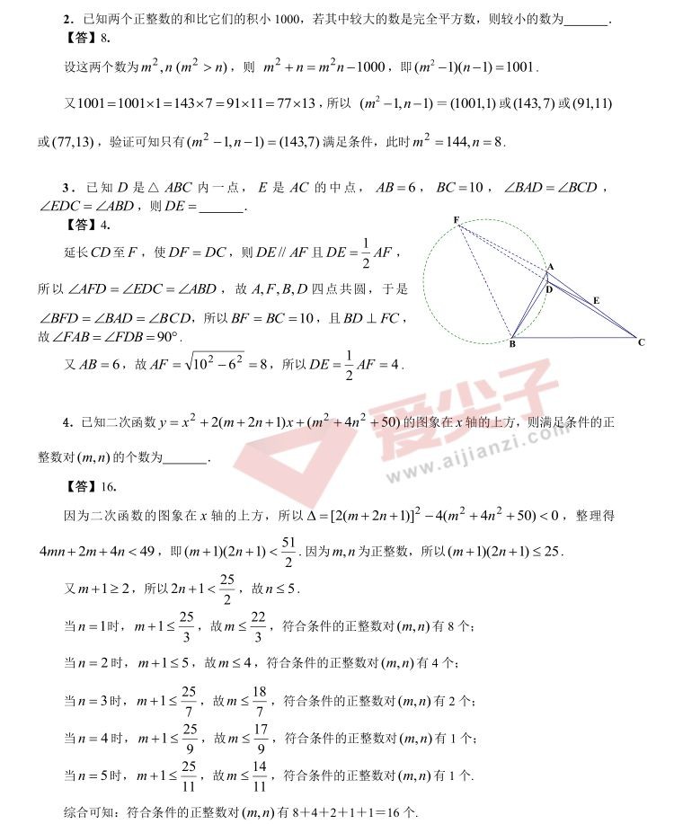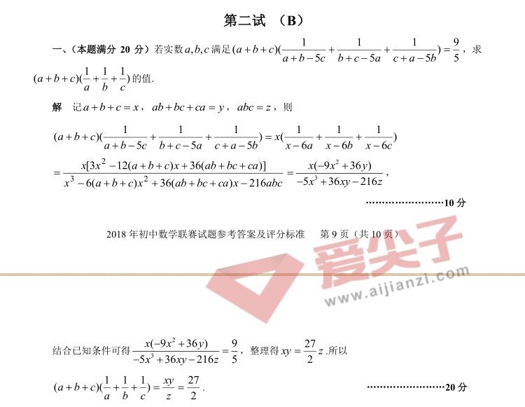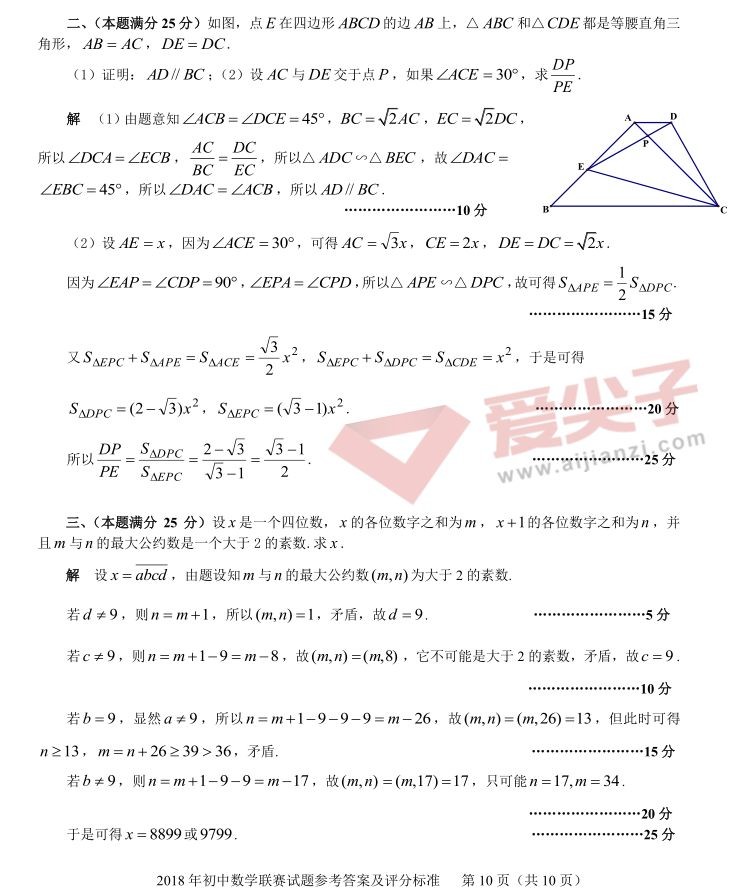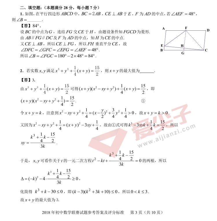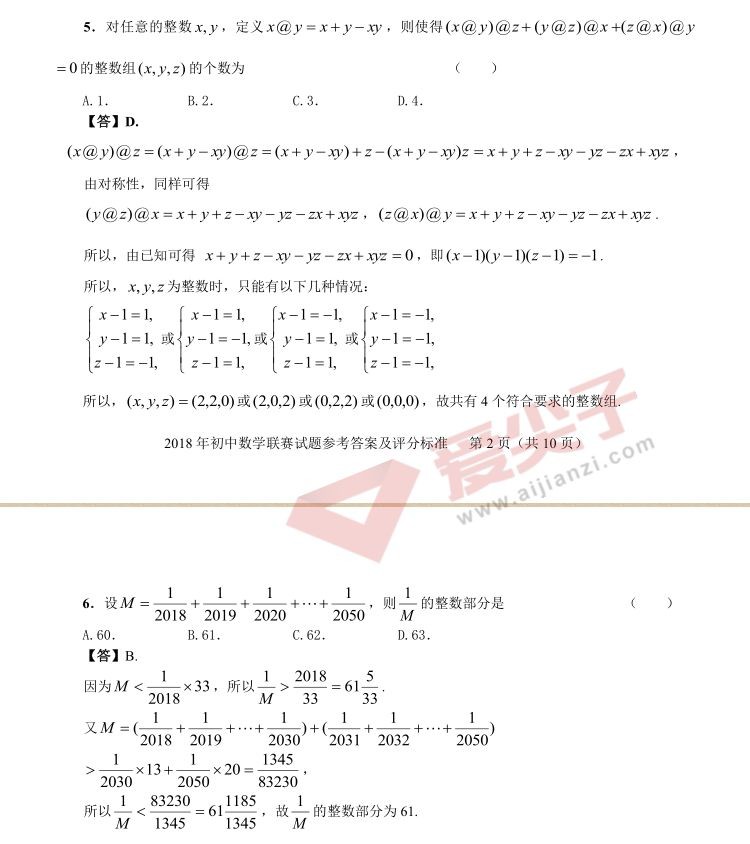 (转)2018年全国初中数学联赛试题&答案解析
