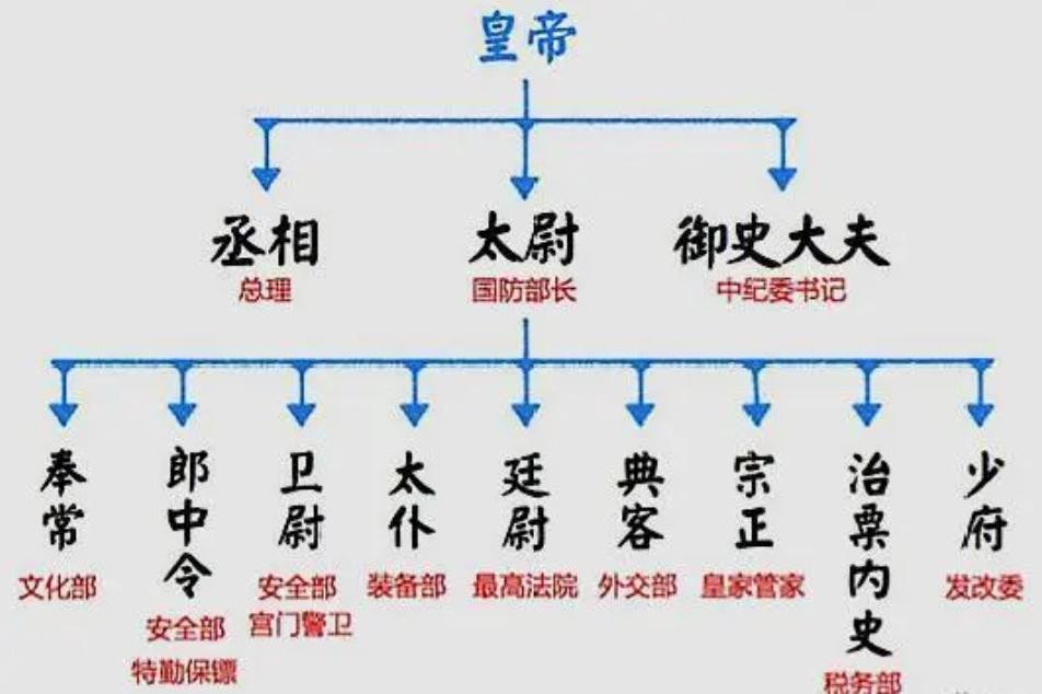 秦朝、西汉改以丞相和太尉为中央最高官职,御史大夫次之。
