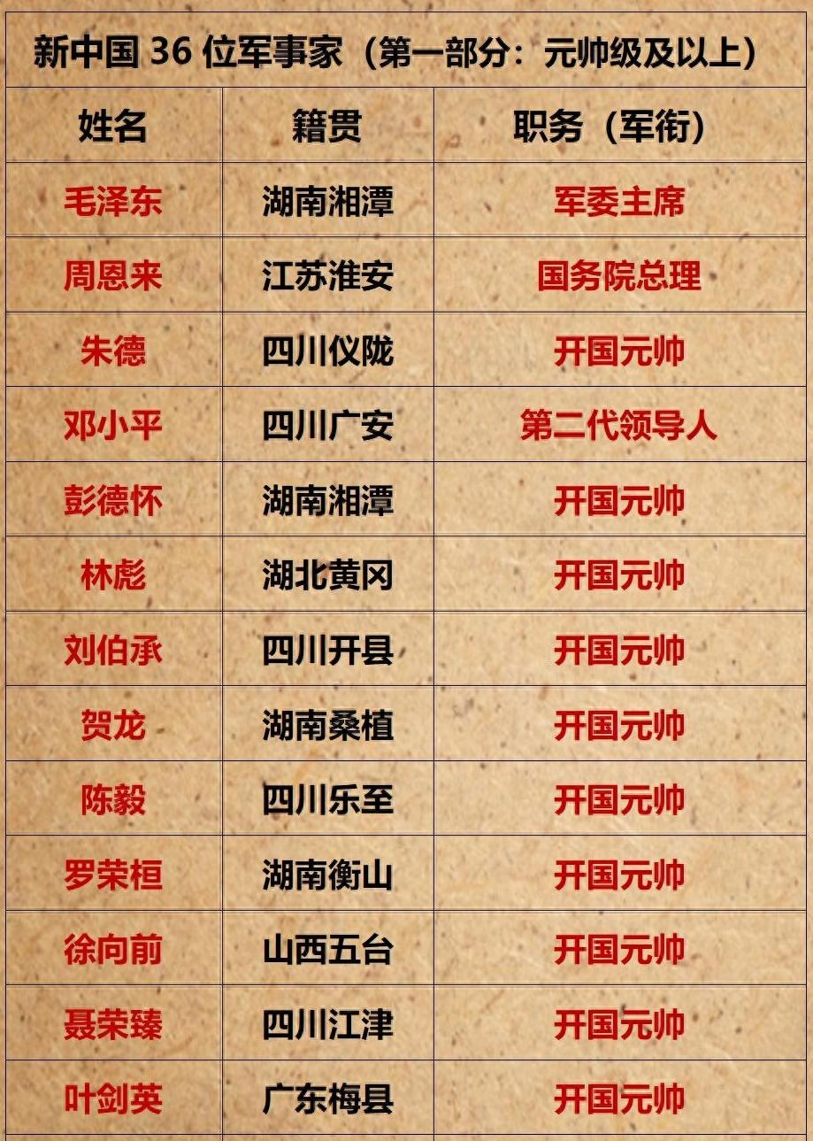3,朱德:四川仪陇人,红军之父,八路军总指挥,解放军总司令,共和国十大元帅之首。