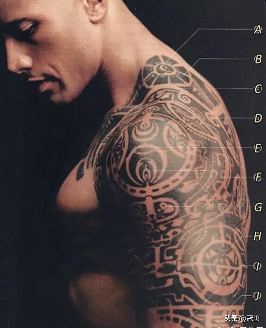 巨石强森,一个强大、有力量的名字,有非常多经典的电影,而且都是硬汉正义的形象,而相比他的力量与摔跤技能,自身的纹身似乎更具趣味性。