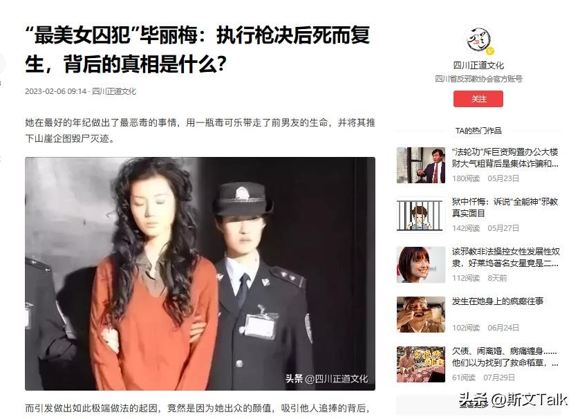 以上内容参考自四川正道文化,2023.02.06,关于“‘最美女囚犯’毕丽梅:执行枪决后死而复生,背后的真相是什么?”