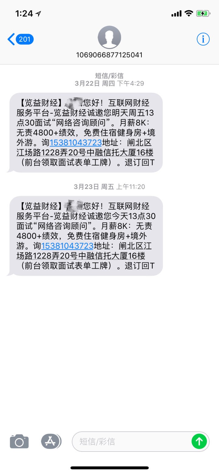 不过对于那些对这些职位不感兴趣,没有找工作打算的人来说,这样的短信的确有点儿烦。