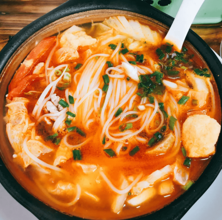 吃的时候先用一勺汤拌匀蘸碟,捞起锅里的米粉和配菜裹着蘸碟吃,汤底酸鲜开胃,米粉爽滑入味,吃完再喝汤,别提多舒服!而且作为核心底料的红酸,是天然发酵而成,不含添加剂,健康又美味。