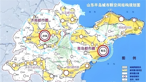 山东省实施了“一群两心三圈”的区域发展新格局,突出了青岛和济南的双引擎带动全省经济发展,规划三个圈发展集群崛起。