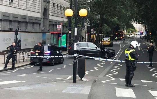 事发时正值上班高峰时间,目前还不清楚受伤行人的数目,但警方表示他们没有生命危险。事发位置,位于一条供汽车和出租车进入议会上院入口的隔离车道附近。大批武装警察很快抵达并包围了现场、并封锁了议会大厦附近区域、关闭了威斯敏斯特地铁出入口。