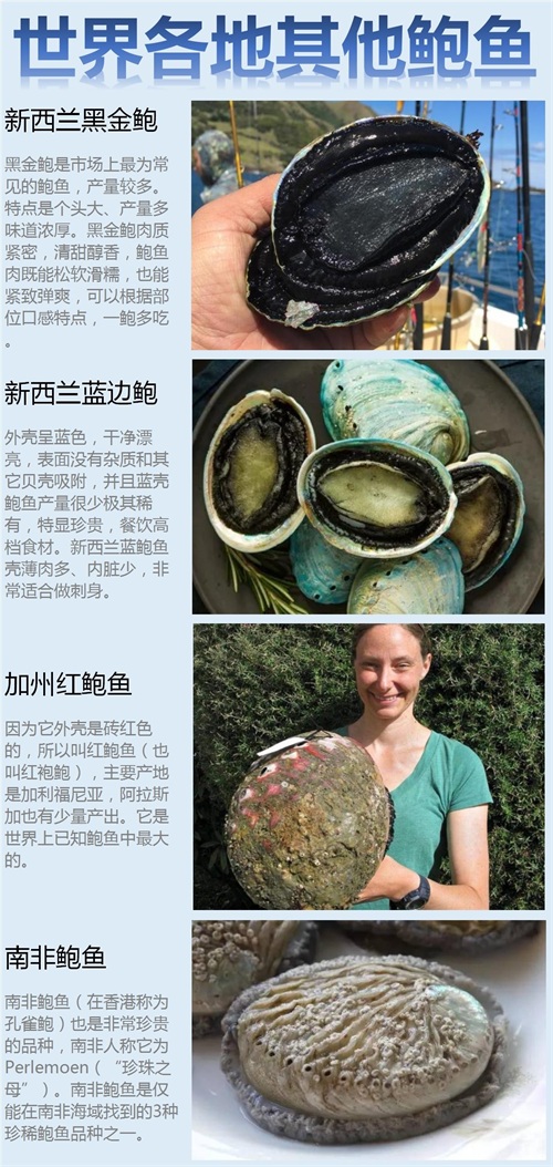 世界各地其他鲍鱼也是各式各样,有的个头比脸盆还大,下面我们一起看看还有哪些常见的进口鲍鱼: