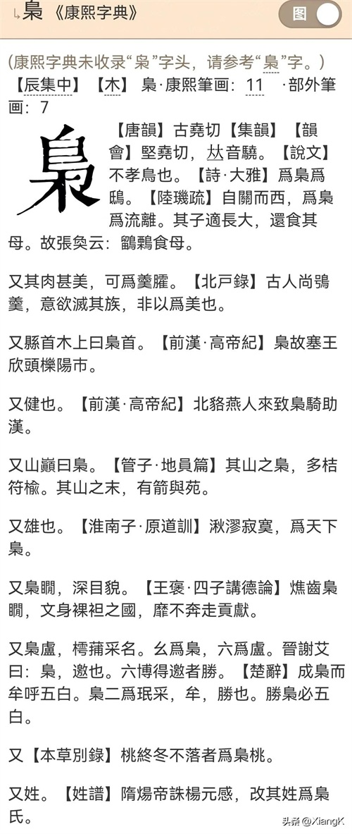 三、“枭”字《康熙字典》解释: