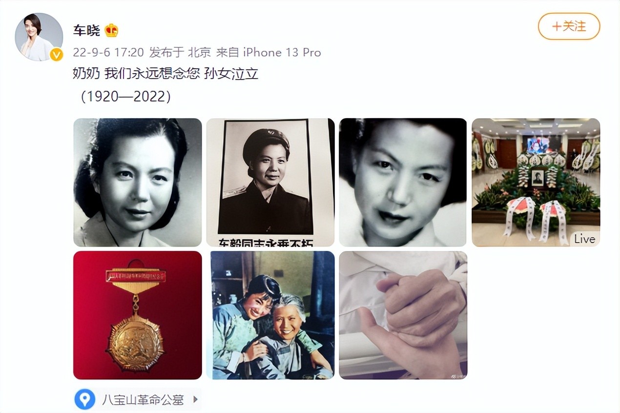 车晓在社交平台发文称,“奶奶,我们永远想念您,孙女泣立。”