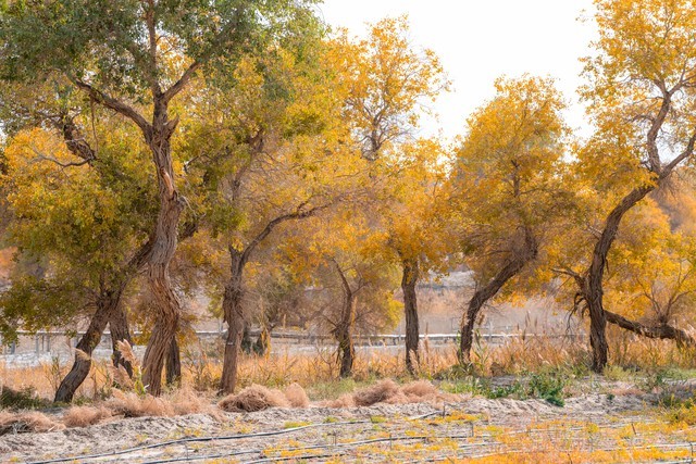 3. 胡杨林自然公园:位于沙雅县努尔巴克乡,距离县城约16公里。公园内拥有保存完好的原始胡杨林,树木形态各异,展现了胡杨“千年不死、千年不倒、千年不朽”的独特魅力。秋季时,金色的胡杨林与碧水交相辉映,景色壮观。