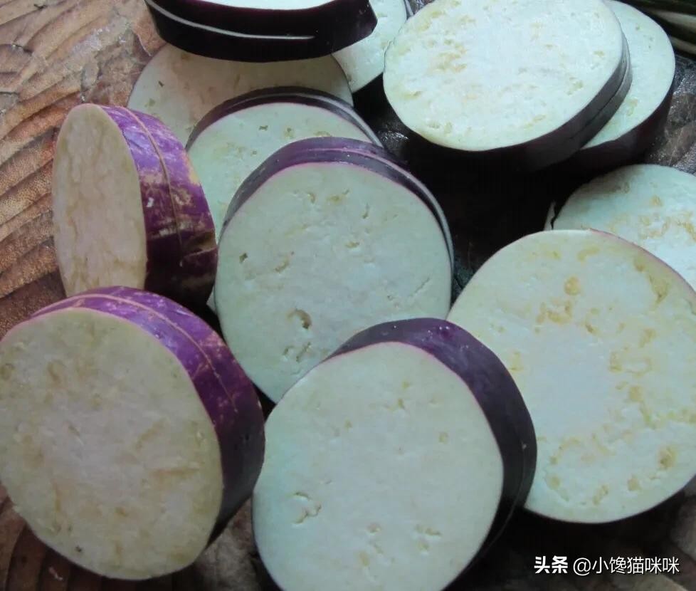 3.茄子洗净,切片,每两片之间留少许连着,不要切断。