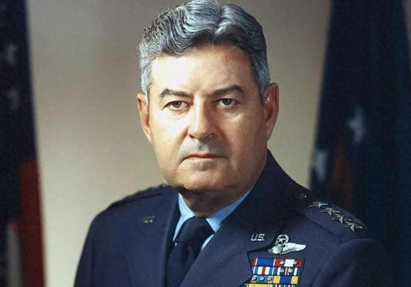 李梅,全名为柯蒂斯·李梅,37岁时就晋升少将,成为当时美国陆军中最年轻的少将。李梅一生中最辉煌战绩是“火攻东京”。