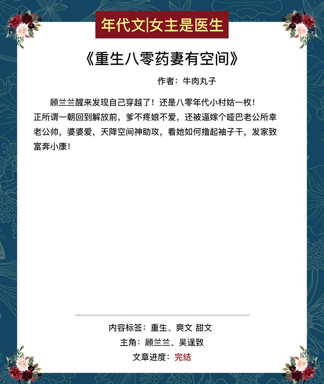 这期给大家推女主是医生的年代文或带医神系统,或带药田空间。