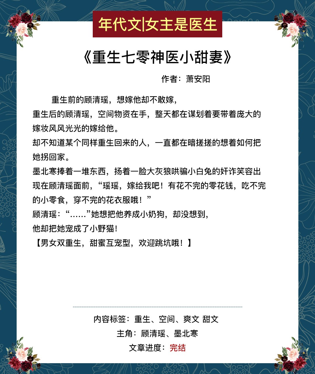 第七本《重生七零神医小甜妻》作者:萧安阳