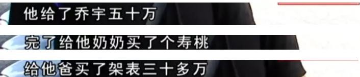 便给了乔宇50万现金作为感谢,还赠送给了他所谓的“父亲”一块价值30万的手表,和一副价值75万的字画。