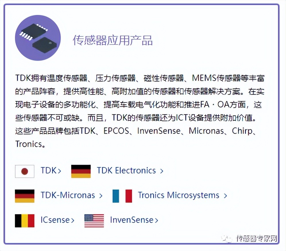 ▲TDK传感器业务板块(来源:TDK官网)