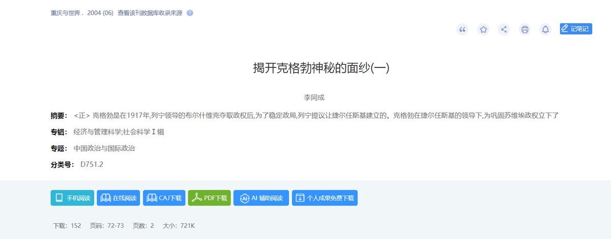 李同成.揭开克格勃神秘的面纱(一)[J].重庆与世界,2004,(06):72-73.