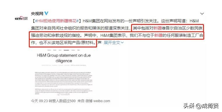 2020年初,H&M集团发布声明,声称不再与新疆的服装厂合作,并影射新疆存在“强迫劳动”和“宗教歧视”等问题,这条声明一出,立刻让不少中国网友感到不爽,纷纷开始抵制。